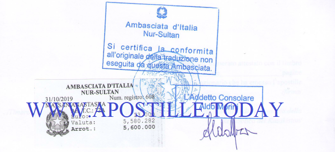 A sample of the document certified at the Italian Embassy (Consulate) in Kazakhstan.