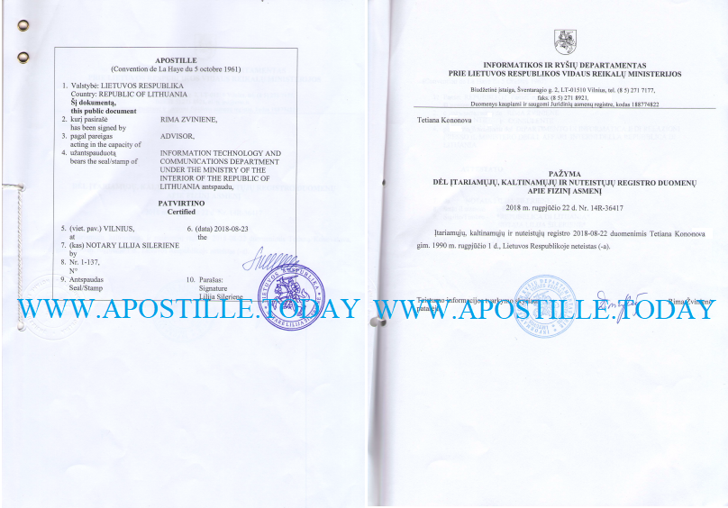 Basically, legalization in Lithuania is the preparation of Lithuanian documents to be used worldwide. There is more than one procedure of documents legalization. It depends on the target country and on the type of document that needs to be legalized.