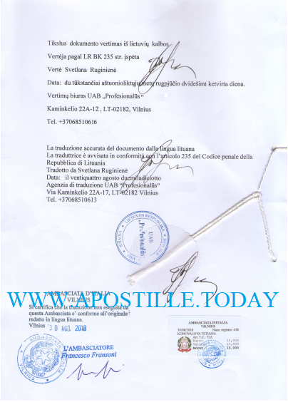 A sample of legalization at the Italian Consulate in Vilnius (Lithuania).