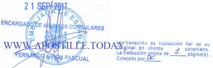A sample of the final stage of legalization in the consular division of the Embassy of Spain in Kyiv.
