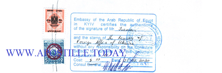 A sample of the final stage of legalization in the consular division of the Embassy of Egypt in Kyiv.