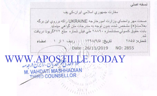 A sample of the final stage of legalization in the consular division of the Embassy of Iran in Kyiv.