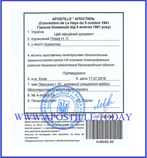 Many clients decide to simplify the task of documents legalization in Ukraine and set a task to our officers to attach a notarized translation to the original document and certify the translation by Apostille. But this procedure of documents preparation in Ukraine does not work, since if there is no Apostille on original or notarized copy of original document, the notarized translation is not subject to apostilization either.