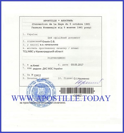 Example of Apostille form issued by the Ministry of Justice of Ukraine.
