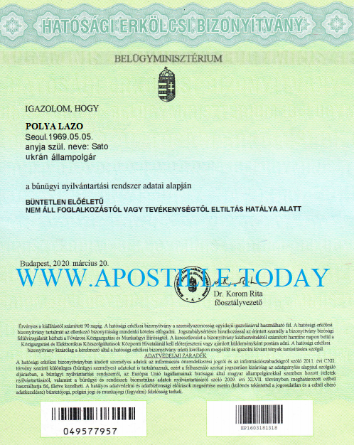 Некоторые клиенты называют данный документ - «мадьярская справка о несудимости» или «официальный моральный сертификат Венгрии».