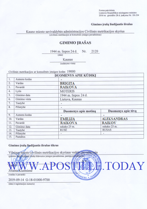 Наша компания предоставляет услуги по истребованию свидетельства о рождении в Литве.